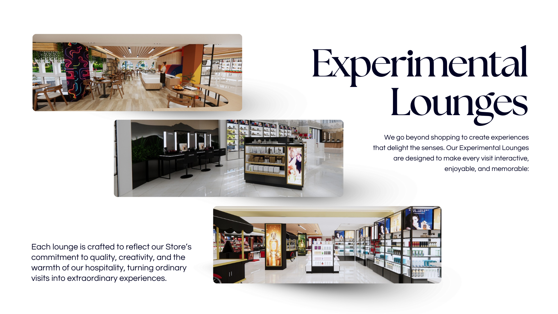 Every detail of our store is designed to create an inviting and luxurious shopping experience. Located in the heart of Muscat, our stores combine modern elegance with our warmth, reflecting both style and tradition. The interiors are thoughtfully curated with clean lines, well-organized displays, and ambient lighting that highlights our high-quality products while making every corner accessible and welcoming. Comfortable spaces, soothing colors, and subtle scents enhance the shopping journey, allowing our customers to explore at their own pace.